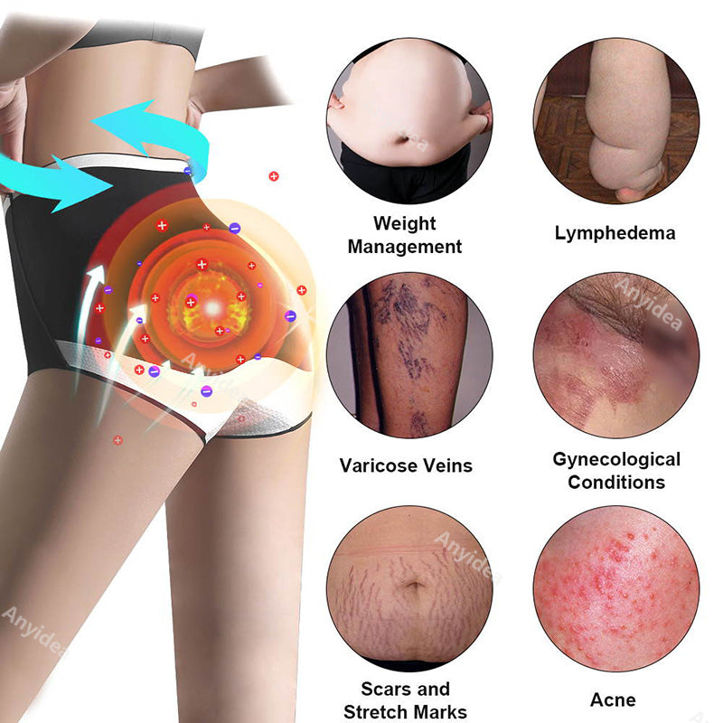 Самонагряващите се шорти Anyidea™ с турмалин и титанови влакна са нещо повече от моделиращо облекло и предлагат цялостно решение за доброто ви здраве. Те са насочени към проблеми като целулит, лимфедем, белези, стрии, акне и гинекологични проблеми, като използват научно доказани далечни инфрачервени лъчи, терапия с отрицателни йони, титан и турмалин за видими ползи за здравето и подобрено благосъстояние.