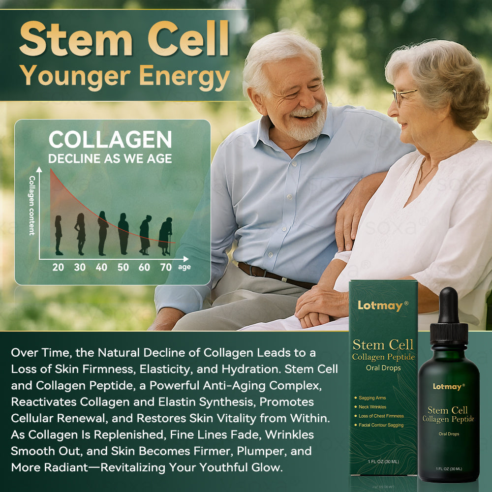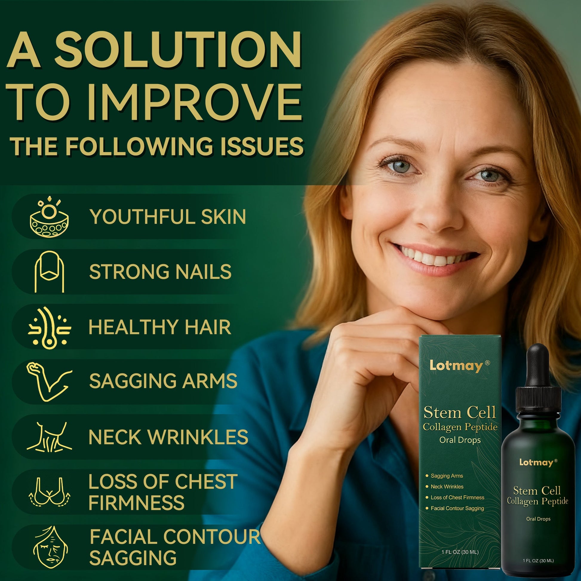 𝐋𝐨𝐭𝐦𝐚𝐲® Stem Cell & Collagen Peptide Oral Drops е научно разработен продукт, създаден да стимулира производството на колаген и еластин, да възстановява увредената кожа и да върне стегнатия и лифтинг ефект — постига дълбок ремонт без инжекции или операции, подобрявайки стегнатостта и блясъка на кожата.