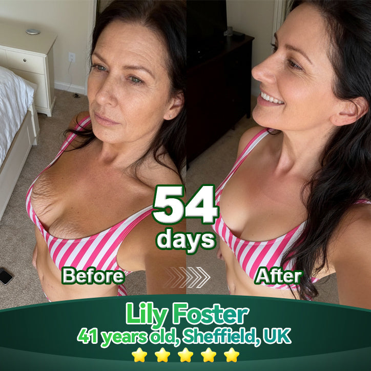 „Ако търсите нещо, което да ви накара да изглеждате и да се чувствате по-добре – това е! Пробвала съм дори най-скъпите добавки, но това направи за 7 седмици неща, които други не постигнаха с месеци. Кожата мииии… о, Боже. Кожата ми!! Гледах се в огледалото днес и сякаш върнах времето назад с няколко години! Кожата ми е много по-стегната, бръчките се изглаждат, лицето ми е супер гладко и хидратирано. Дори енергията ми е напълно обновена! Косата ми обикновено е тънка, а сега виждам, че се сгъстява! Изглежда толкова здрава и блестяща. Ноктите ми растат по-бързо от всякога. КУПЕТЕ го. Току-що поръчах още една бутилка, защото не искам да пропусна нито един ден.“